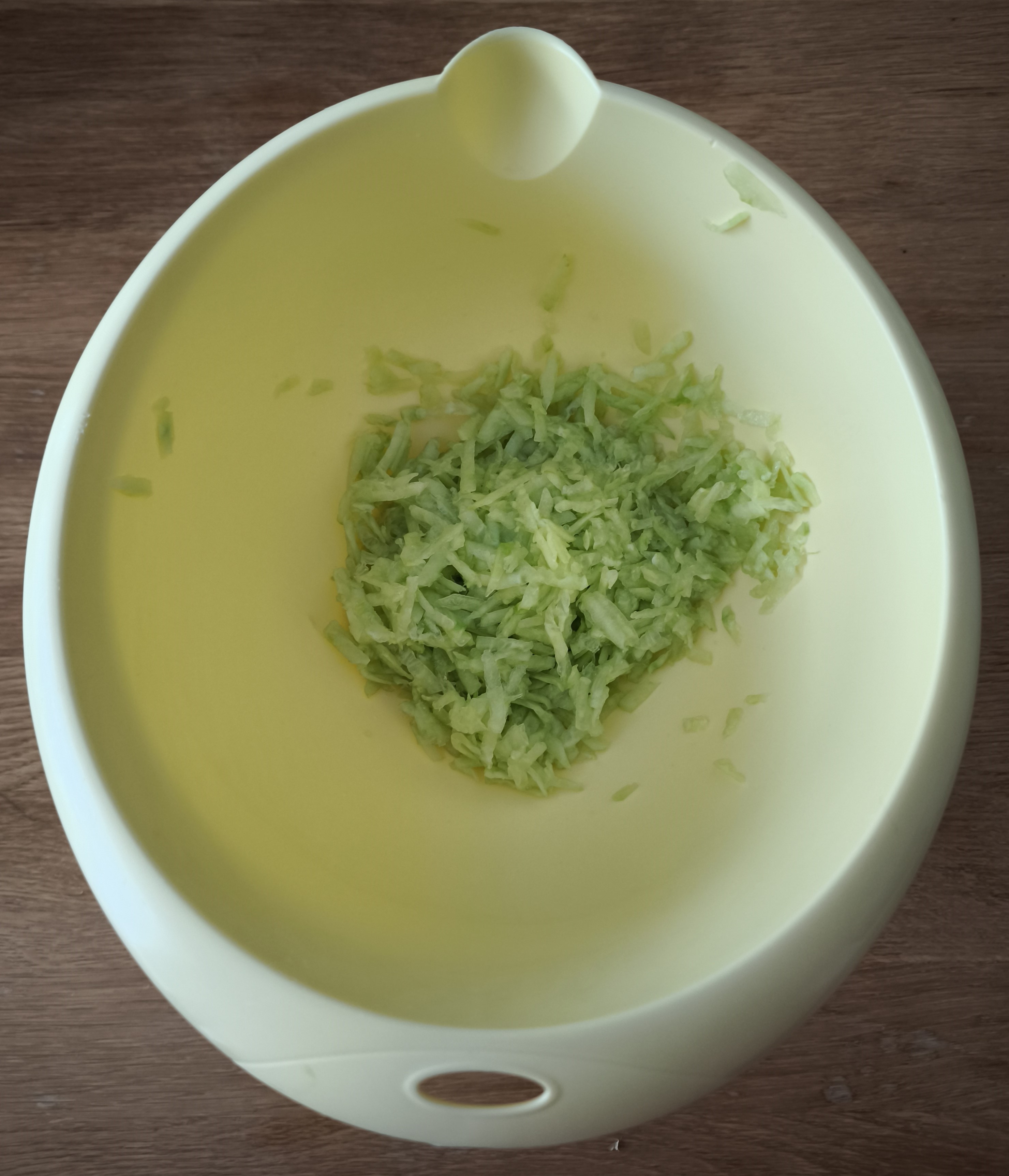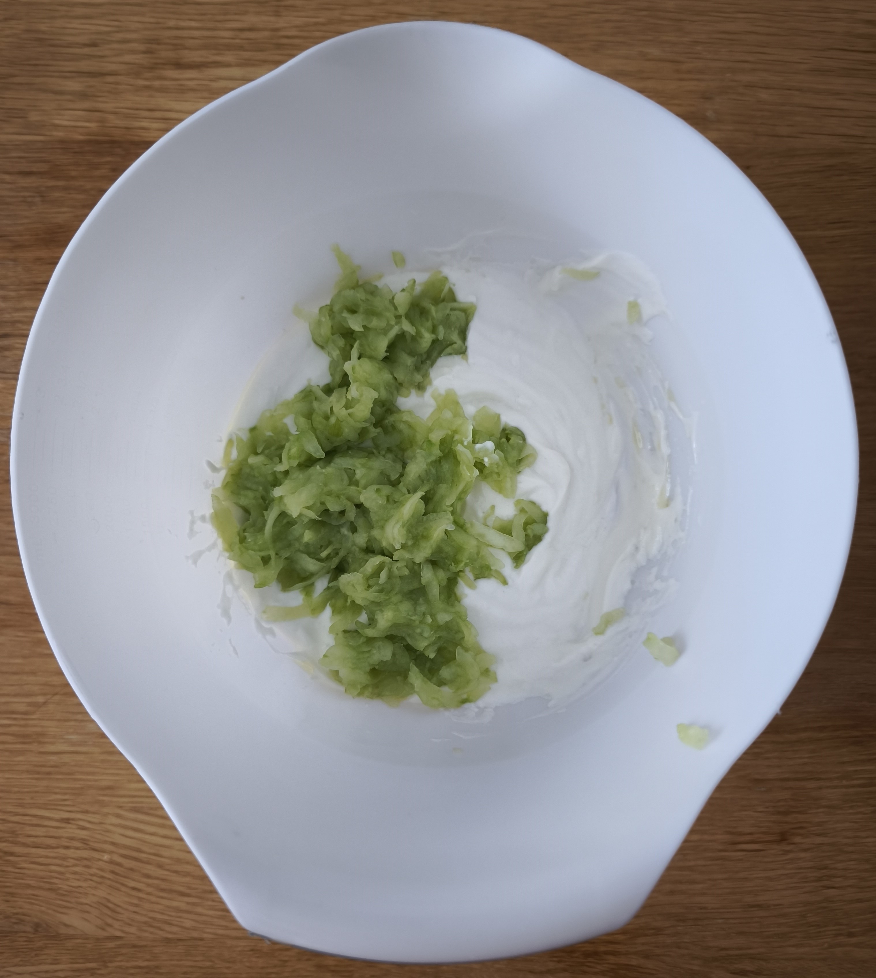 - Make the Tzatziki Base: While the chicken cooks, begin your tzatziki. Peel and coarsely grate the cucumber. Place it in a bowl with 1 tbsp white wine vinegar and a pinch of salt. Mix well and set aside for about 10 minutes to release liquids.